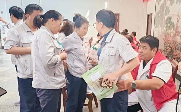 义诊环节,本溪市中心医院结合本钢人资中心开展的专项调研,针对企业职工常见的职业健康问题,精心选派心内科、肾内科、中医骨伤科、心理睡眠门诊、儿童健康管理中心、药学部的主任及专家组成医疗团队,为本钢人资中心职工提供健康咨询、科普宣传及用药咨询等义诊服务。护理志愿者还为职工免费做心电图、血糖及血压检查百余人次。不少职工特意带着体检报告前来咨询,现场专家结合体检报告分析后发现职工群体中存在的血压高、失眠、颈椎间盘突出等常见健康问题,大多与职业工作习惯相关,针对不同病症,专家们精准提出治疗对策。